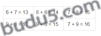 | 6 + 7 = | 8 + 6 = | 7 + 8 = |