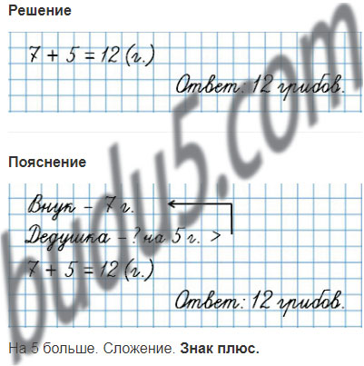 2. Внук нашёл 7 белых грибов, а дедушка — на 5 грибов больше.