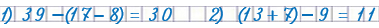 3) Из числа 39 вычесть разность чисел 17 и 8.