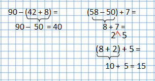 1) Из числа 90 вычесть сумму чисел 42 и 8.
