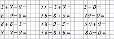 | 7 + 7 – 9 = 5 | 17 – 8 + 6 = 15 | 80 – 0 = 80 |