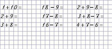 | 2 + 9 = 11 | 17 – 8 = 9 | 3 + 8 – 7 = 4 |