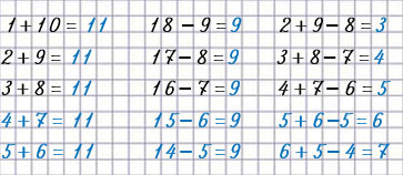 | 11 – 5 + 7 = 6 + 7 = 13 | 18 – 9 + 3 = 9 + 3 = 12 |