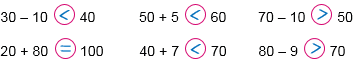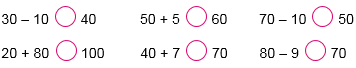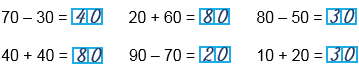 70 - 30 = ![]() | 20 + 60 = ![]() | 80 - 50 = ![]() |