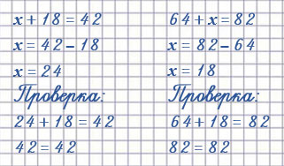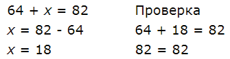 Для проверки решения нужно подставить 18 в уравнение вместо неизвестного слагаемого.