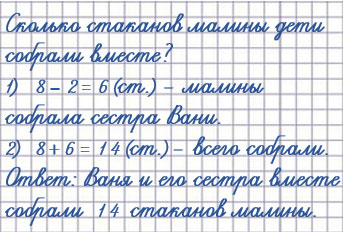 4. Ваня собрал 8 стаканов малины, а его сестра - на 2 стакана меньше.