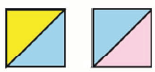 4. Эти два квадрата составлены из одинаковых треугольников трёх разных цветов.