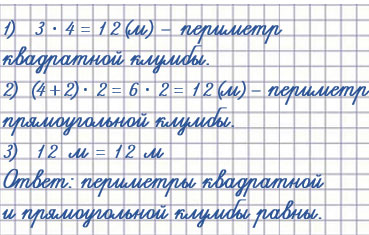 1) 3 • 4 = 12 (м) - периметр первой клумбы