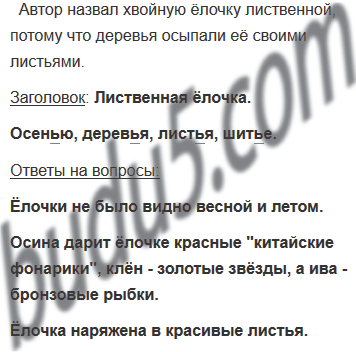 Прочитайте и озаглавьте текст. Объясните, почему автор хвойную ёлочку назвал лиственной. Найдите и выпишите слова с разделительным мягким знаком (ь).