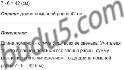 Чему равна длина ломаной, которая состоит из шести равных звеньев длиной 7 см каждое?
