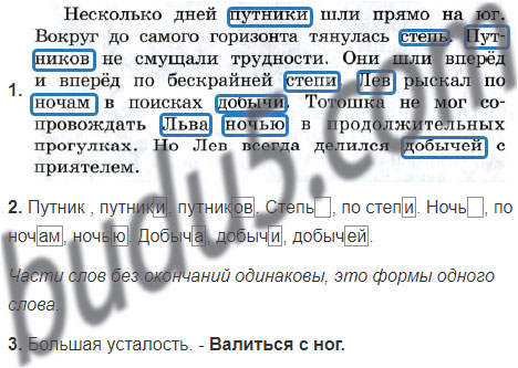 2. Выпишите формы слов путник, степь, ночь, добыча. Выделите окончания. Одинаковы ли части слова без окончаний?
