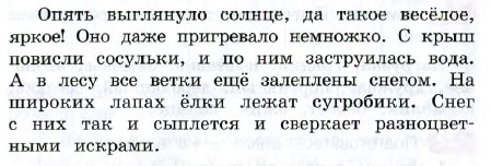 Раздели текст на части по основной теме каждой из них: 1 - о солнце, 2 - о сосульках, 3 - о снеге.
