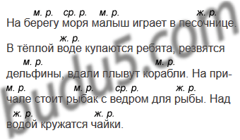 Рассмотрите рисунок. Составьте несколько предложений по рисунку и запишите их. Обозначьте род имён существительных (м. р., ж. р., ср. р.) в записанных предложениях.