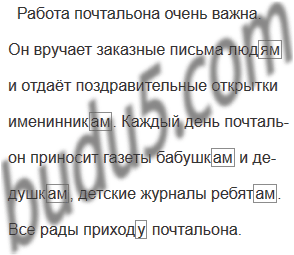 Рассмотрите рисунок. Прочитайте словосочетания для выбора. Составьте и запишите рассказ по рисунку. Найдите существительные в дательном падеже. Выделите их окончания.