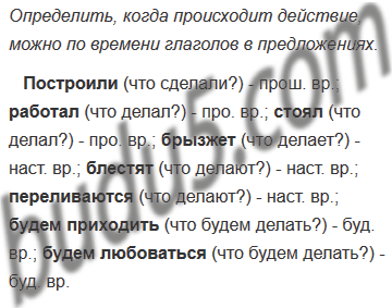 Найдите в тексте глаголы, выпишите их с вопросами, укажите время (наст, вр., прош. вр., буд. вр.).