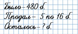 4. В театральной кассе было 480 билетов. Кассир продал билеты на 5 спектаклей, по 16 билетов на каждый. Сколько ещё билетов осталось в кассе?