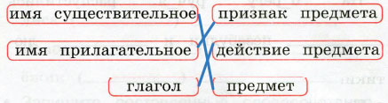 Прочитайте. Соедините линией название части речи и её значение (что обозначает часть речи).
