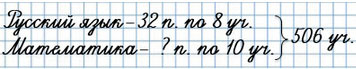 420. Школьная библиотека получила 32 пачки учебников русского языка, по 8 штук в каждой, и несколько пачек учебников математики, по 10 штук в каждой. Всего было получено 506 учебников русского языка и математики. Сколько пачек учебников математики получила библиотека?
