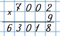 Умножаю сотни: 8 • 2 = 16. 16 сот. - это 1 ед. тыс. и 6 сот.; 6 сот. пишу под сотнями, а 1 ед. тыс. прибавлю к единицам тысяч после умножения единиц тысяч.