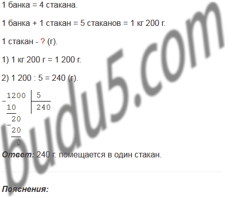 В четыре стакана помещается столько же молока, сколько и в банку. В стакан и банку помещается 1 кг 200 г молока. Сколько граммов молока помещается в стакан?