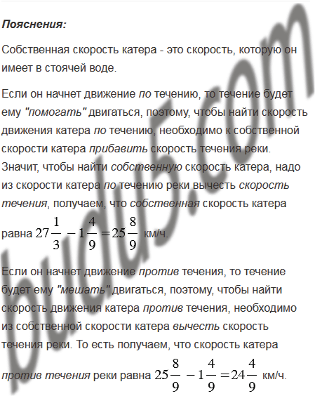 Скорость катера по течению реки составляет км/ч, а скорость течения - км/ч. Найдите собственную скорость катера и скорость катера против течения реки.