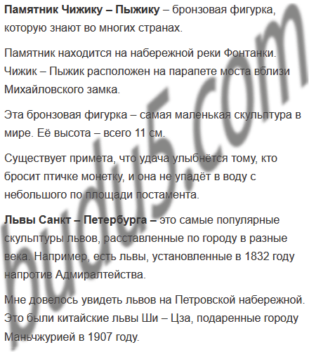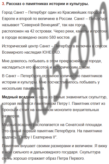 3. Если тебе приходилось бывать в Санкт – Петербурге, приготовься рассказать об увиденных тобой памятниках истории и культуры.