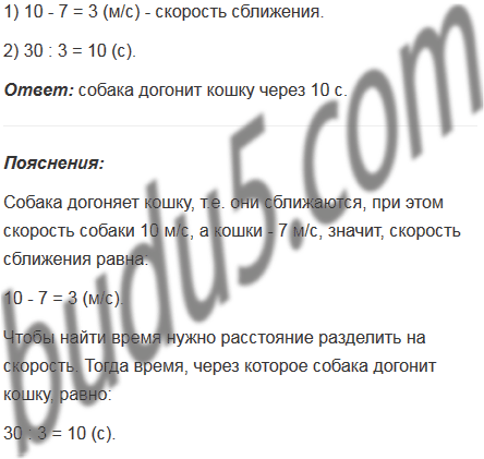 Сейчас расстояние между собакой и кошкой 30 м. Через сколько секунд собака догонит кошку, если скорость собаки 10 м/с, а кошки - 7 м/с?