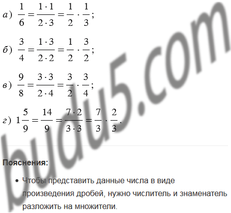 Представьте в виде произведения двух дробей число: