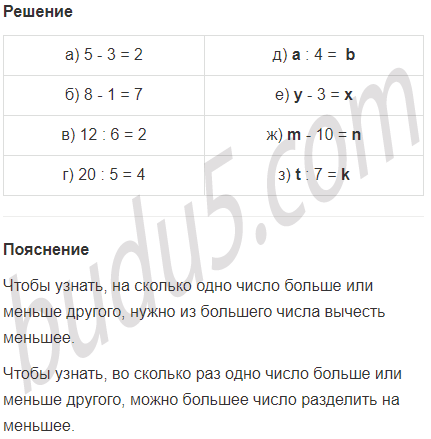 | а) 5 больше 3 на 2 | д) а больше b в 4 раза |
