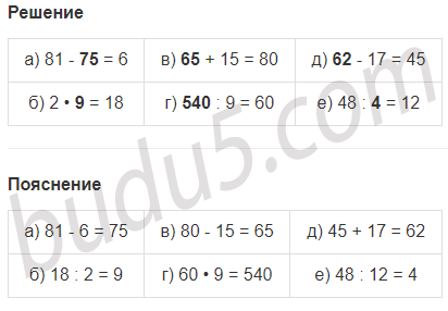 | а) 81 - х = 6 | в) m + 15 = 80 | д) k - 17 = 45 |