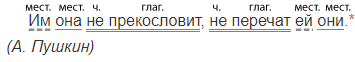 1) Лакей Баклай учил мальчишек «пчелиному языку», таская иногда за волосы, приговаривал: «А ты, мужик, знай: я тебе даю, а барин изволит тебе жаловать; ты ешь, а барин изволит кушать; ты спишь, щенок, а барин изволит почивать». (А. Герцен) 2) Им она не прекословит, не перечат ей они.* (А. Пушкин) 3) Между тем царица* злая, про царевну* вспоминая, не могла простить её, а на зеркальце* своё долго дулась и сердилась. (А. Пушкин) 4) Старику захотелось важных, серьёзных мыслей, хотелось ему не просто думать, а размышлять. (А. Чехов) 5) Клевета и ложь — не одно и то же. (Пословица) 6) А у Ули глаза были большие, тёмно-карие — не глаза, а очи. (А. Фадеев) 7) Я стал не большим, а огромным. (Я. Смеляков) 8) Больше б мог, да было к спеху, тем, однако, дорожи, что, случалось, врал для смеху, никогда не лгал для лжи. (А. Твардовский)